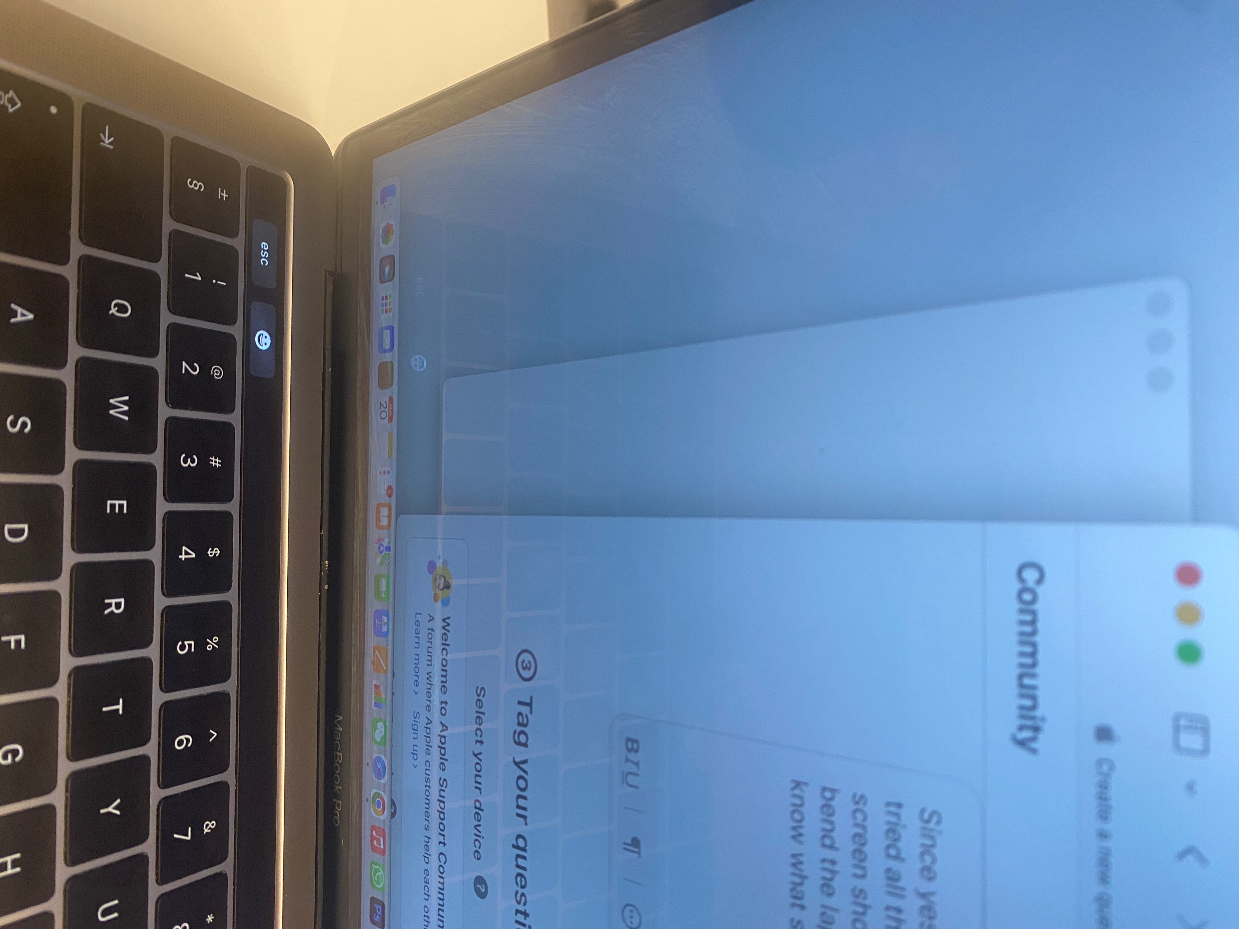 Since yesterday, my laptop has been displaying in various different colors. I tried all the settings and reinstalling macOS but it still will be pink or green screen short after I turn on the laptop. I found this morning that when I bend the laptop slightly lower the screen colors goes back to normal. Please let me know what should I do. I did not drop or damage the laptop before this.