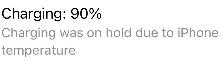 my phone is charging was on hold due to iPhone tempature because my phone overheated! So there’s a notification and battery for settings app! So My phone returns for normal tempature soon!