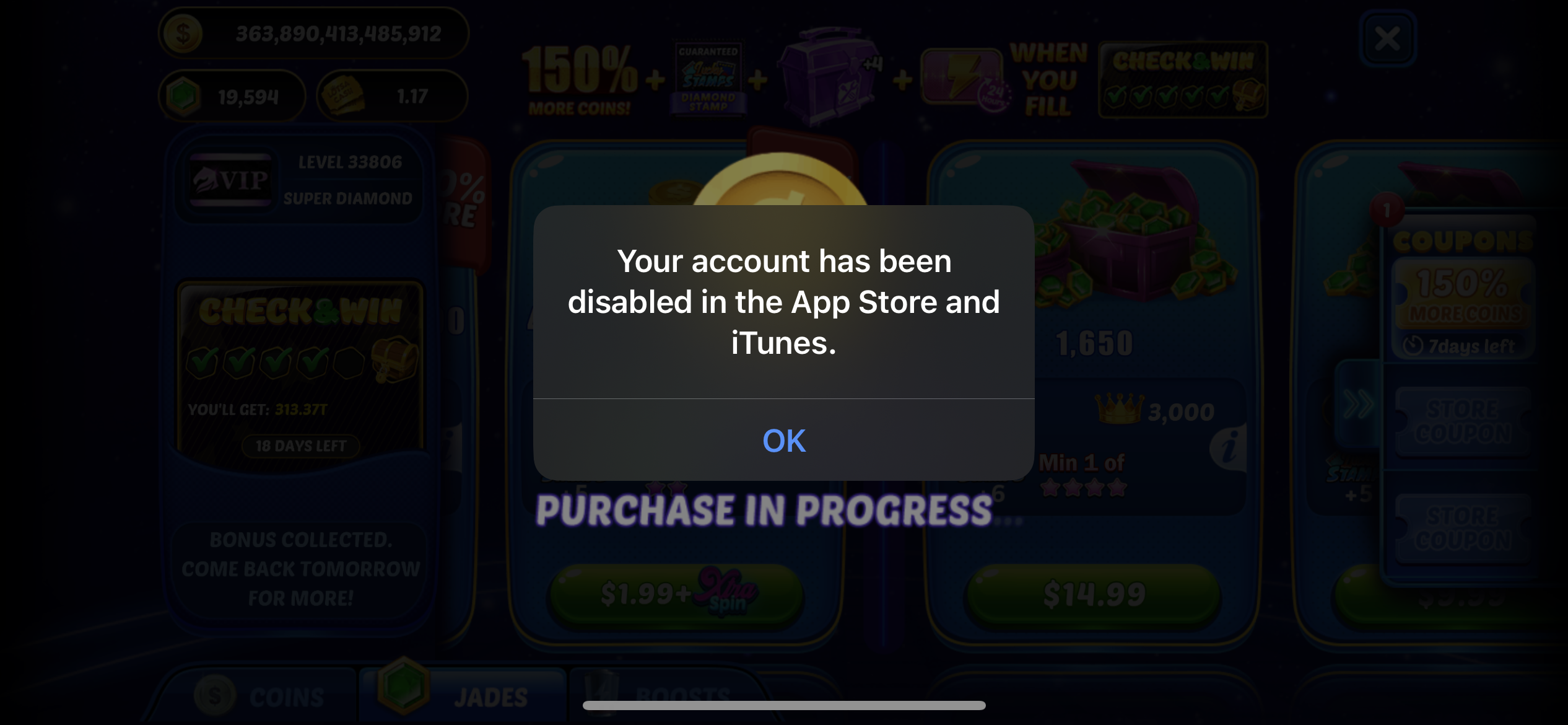 If you see a message that says "Your account has been disabled in the App Store and iTunes", there is a problem with your payment method on your account, to resolve the problem you need help from Apple support, click -> contact Apple Support for help.