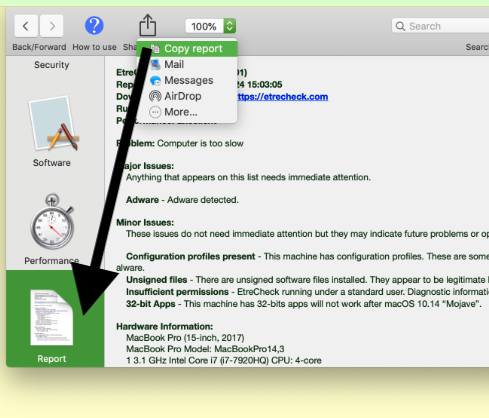 Post back the Full Report - copy and paste - >>>> using the Additional Text Icon ( 3rd Icon to last ) <<<<