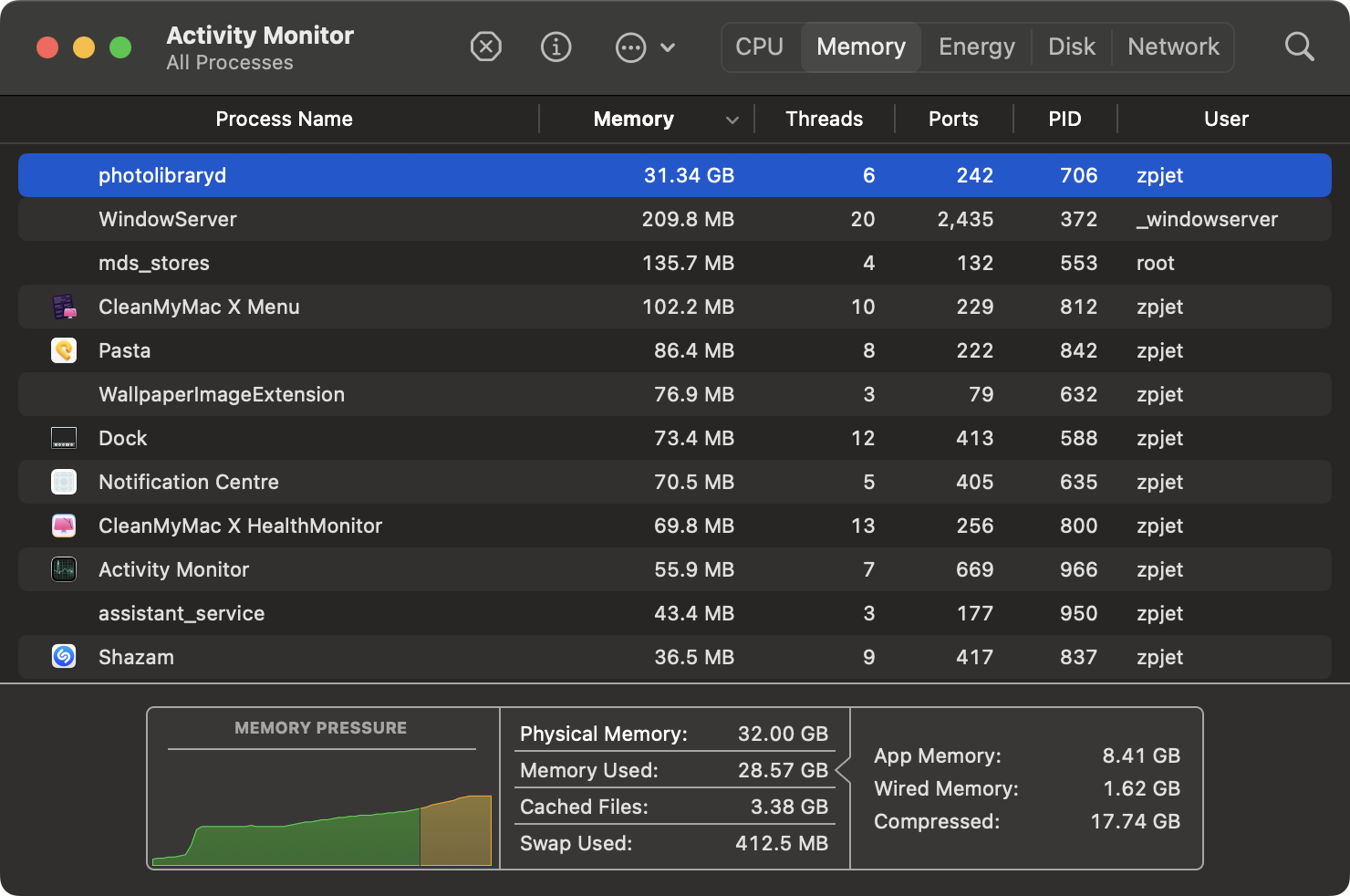 1. Earlier, I deleted my main library and created a new one, but it was the same - memory use creeping up to 45 GB.