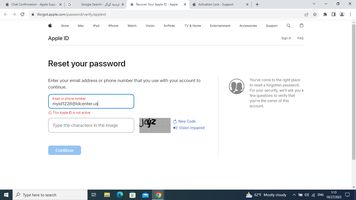apple id is not active error