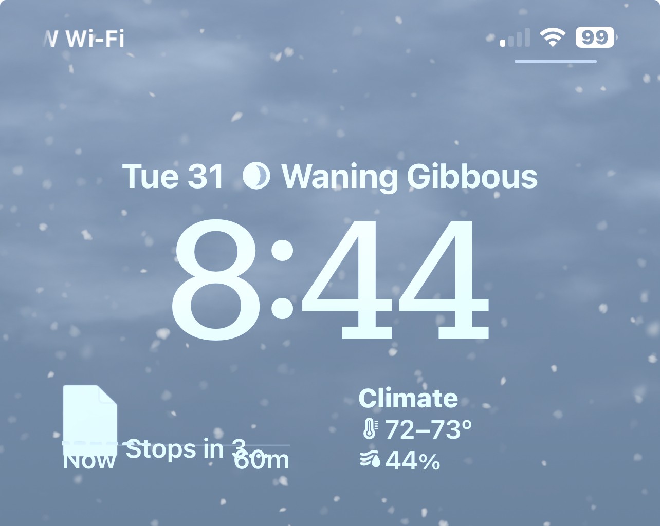 On the Weather wallpaper lockscreen, a few weather related widgets are placed by default. One shows the amount or likelihood of precipitation over the next hour. This has always worked fine with rain, but tonight I got snow for the first time and noticed the icon representing snow is missing, doing a generic white page icon.