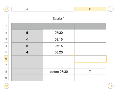 For example I want to sum column A only if B is earlier then 07:30