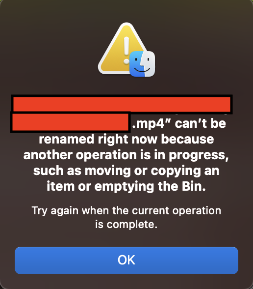 Running Ventura 13.6 and unable to move then rename file as another copy in in progress: