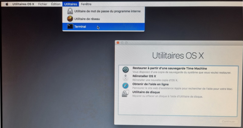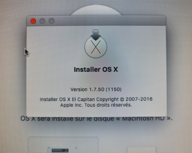 At startup, with the iMac connected via ethernet, holding down the "N" key, it starts up on a NetBoot network server (to be defined on the local network). The various MacOS versions were available on the servers. We chose El Capitan and the installation went ahead.