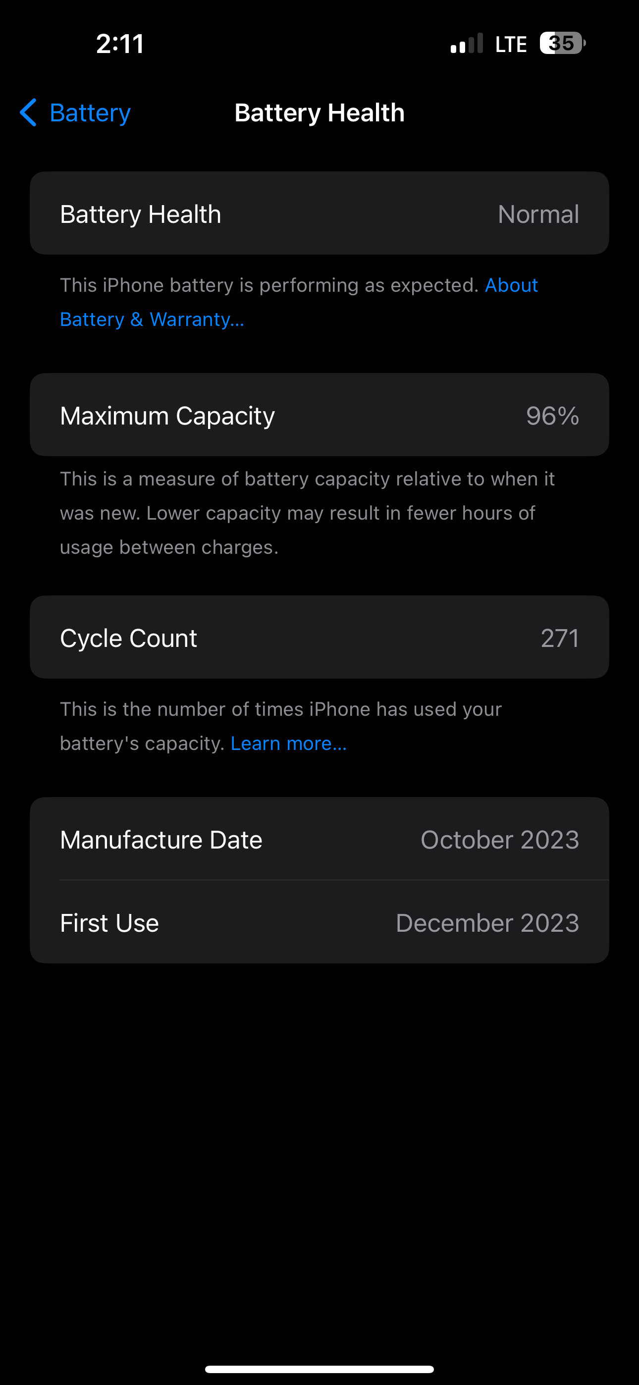 I’ve had iPhone since the 4s & this is the first time I have experienced my iPhone battery health dropped to 99 in less than 2 months & the battery draining quicker than my old iPhone 13 Pro Max that had a battery life of 83% after having it for 2 years. I have always been careful with battery health & hardly charge to 100% and have gone 1-2 days until needing to charge my iPhone.