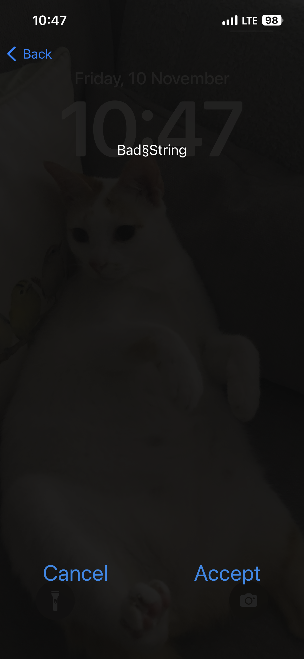 "Bad String pop up message: I keep getting this message when travelling and turning my phone back on. What is it? How do I make it stop? [...]My phone is an iPhone 13 and I bought it new about a year ago"