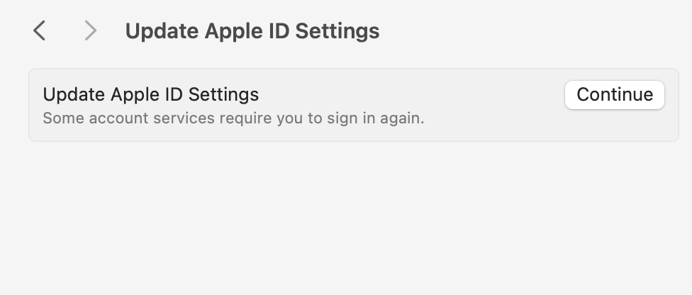 Hi, Under macOS Sanoma 14.0 my MacBook Air asks me to update my Apple ID. I might have mistyped it, but I have it. It works to post here for example. No need to reset it.