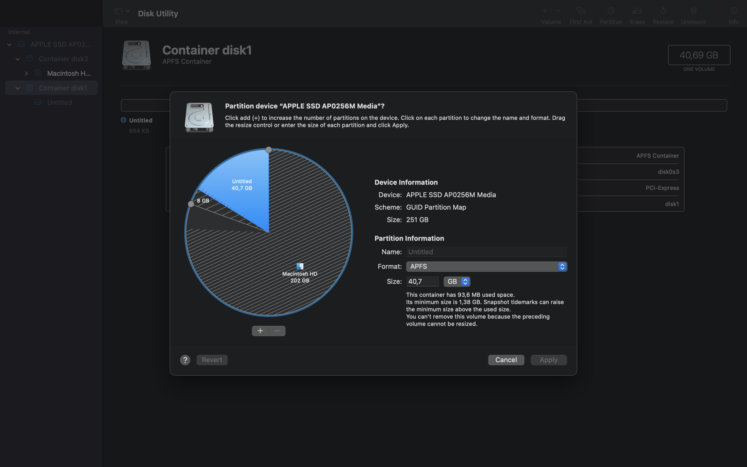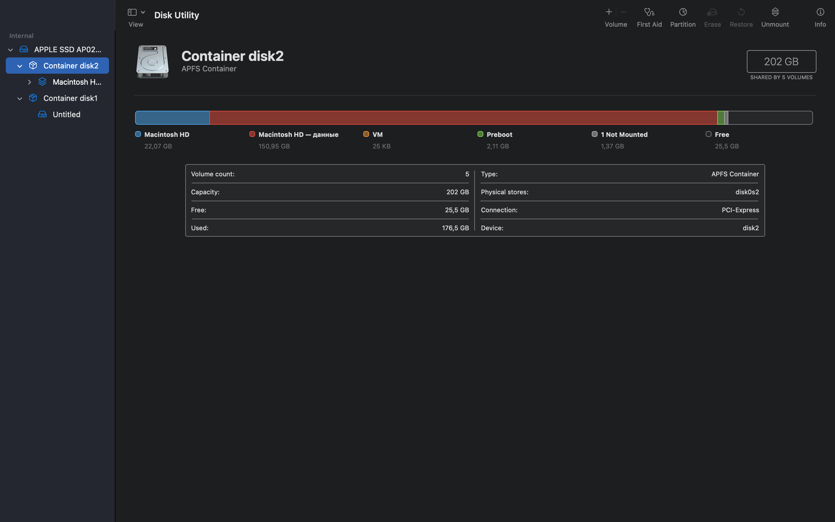 As i remember 2nd division of SSD was created and used for Windows, but never actually used. I formatted it to APFS file system just to be able to use this space. Now I want to combine it with main disk, tried many options from forums but still unsuccessful.