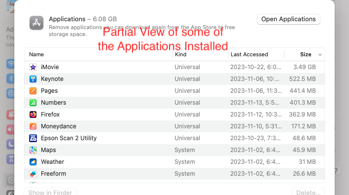 I was analyzing my disk space, and I found out that apps take up 45GB of my disk space. When I look into the apps folder, there is only about 10GB. Where can I find other disk space that is used for apps?