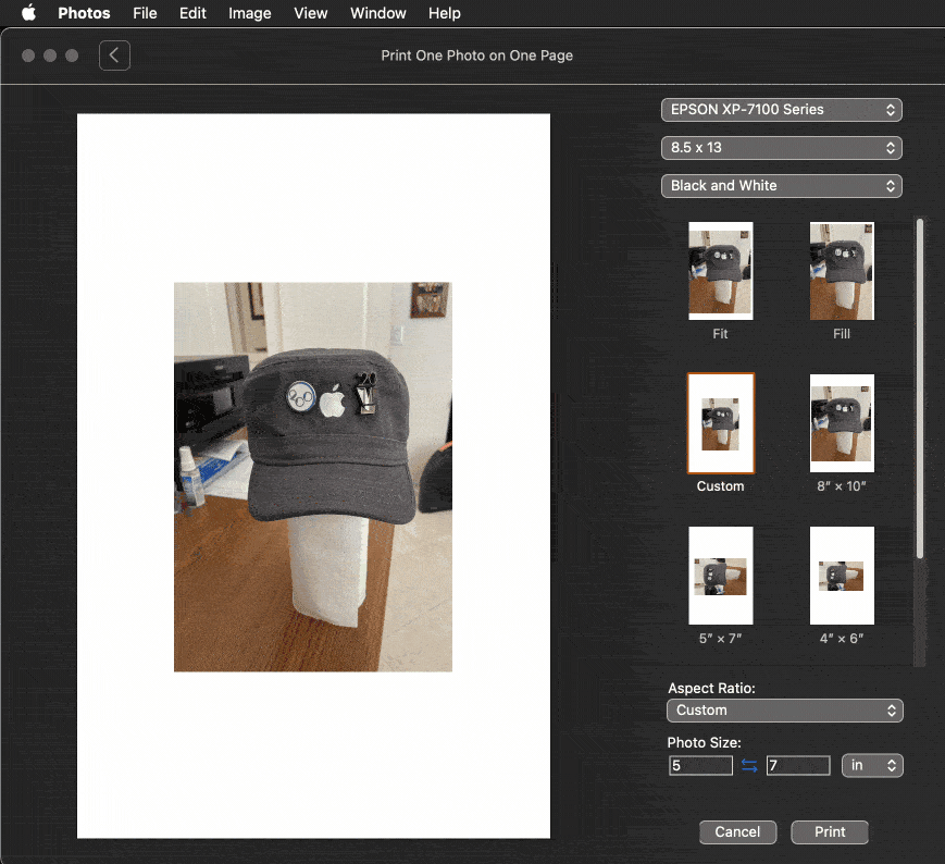 I would like to print a photo that has been saved as a portrait and change the photo to landscape mode