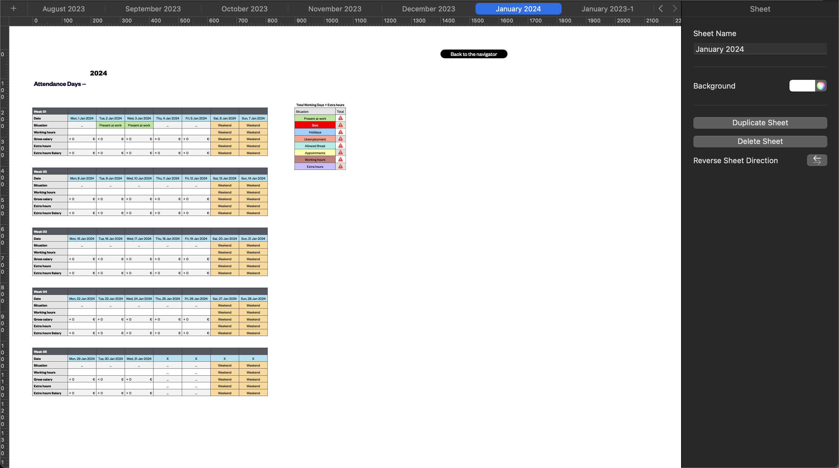 Then click on condition and on Present at work in the summary, which will give you that: