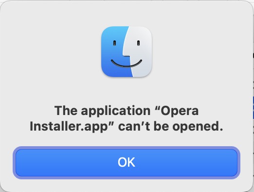 I've downloaded the Installer app directly from the Opera site several times, and each time it comes back and says it can't install Opera.
