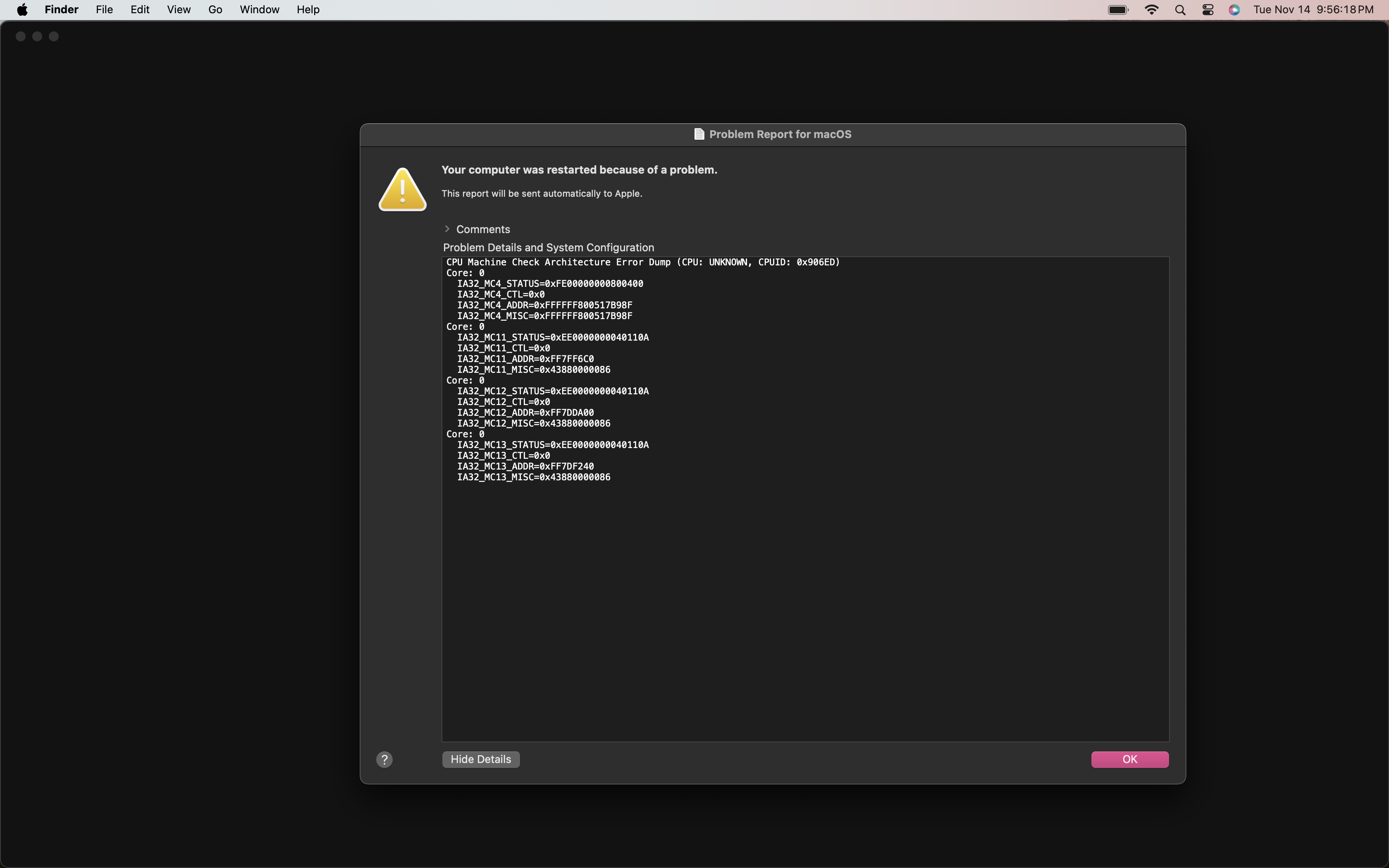 panic(cpu 1 caller 0xfffffff00d1c5f60): x86 CPU CATERR detected