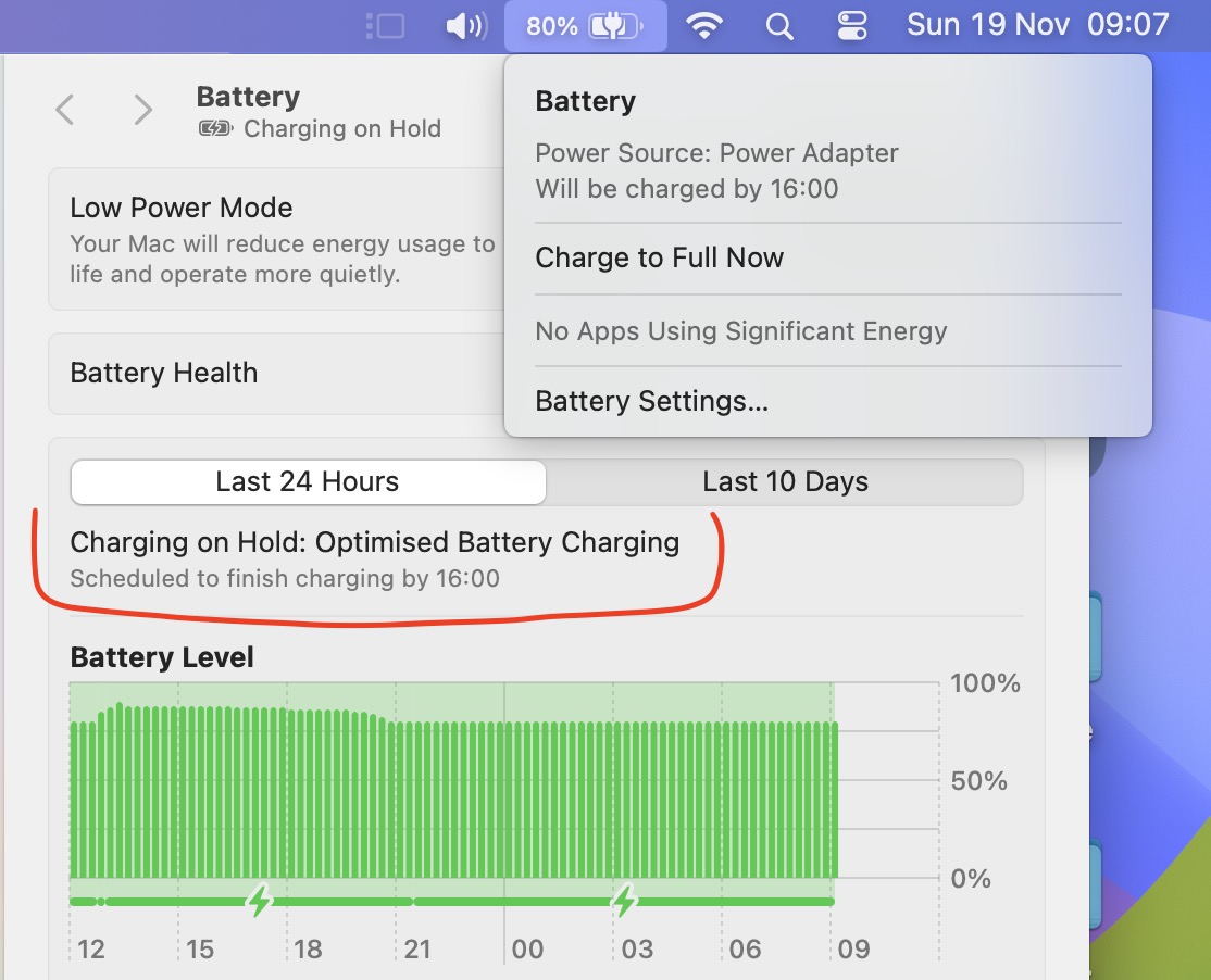 "Charging on Hold: Optimised Battery Charging" Anyone seen this with Sonoma 14.1.1?