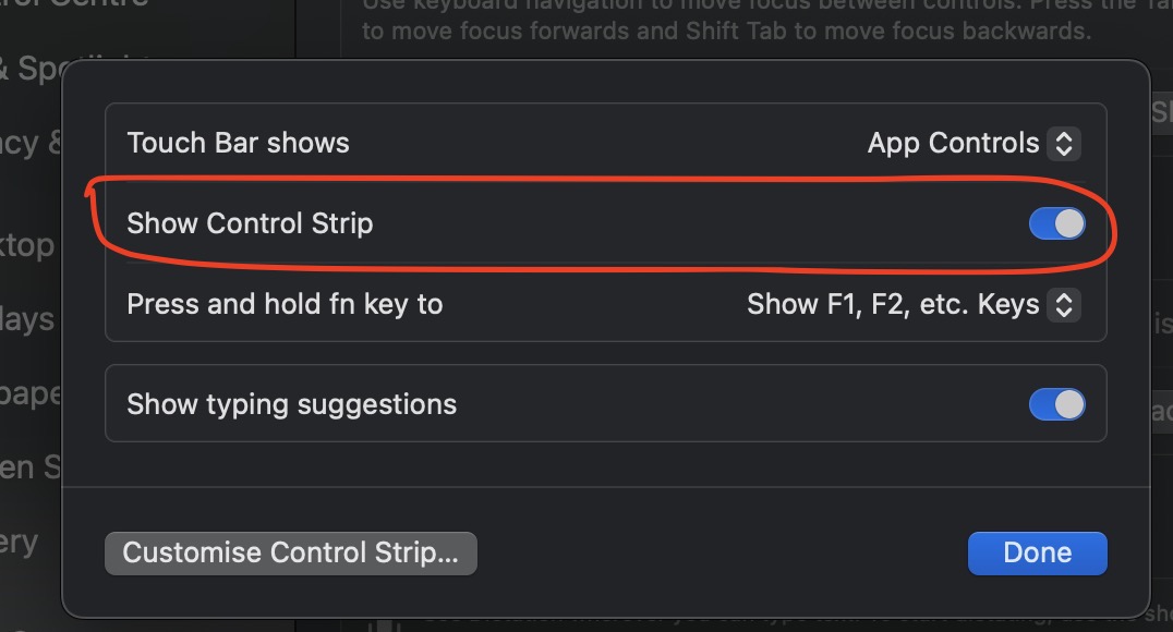 For example, the services, in Activity Monitor, 'TouchBarServer' and 'Control Strip' are not even listed.