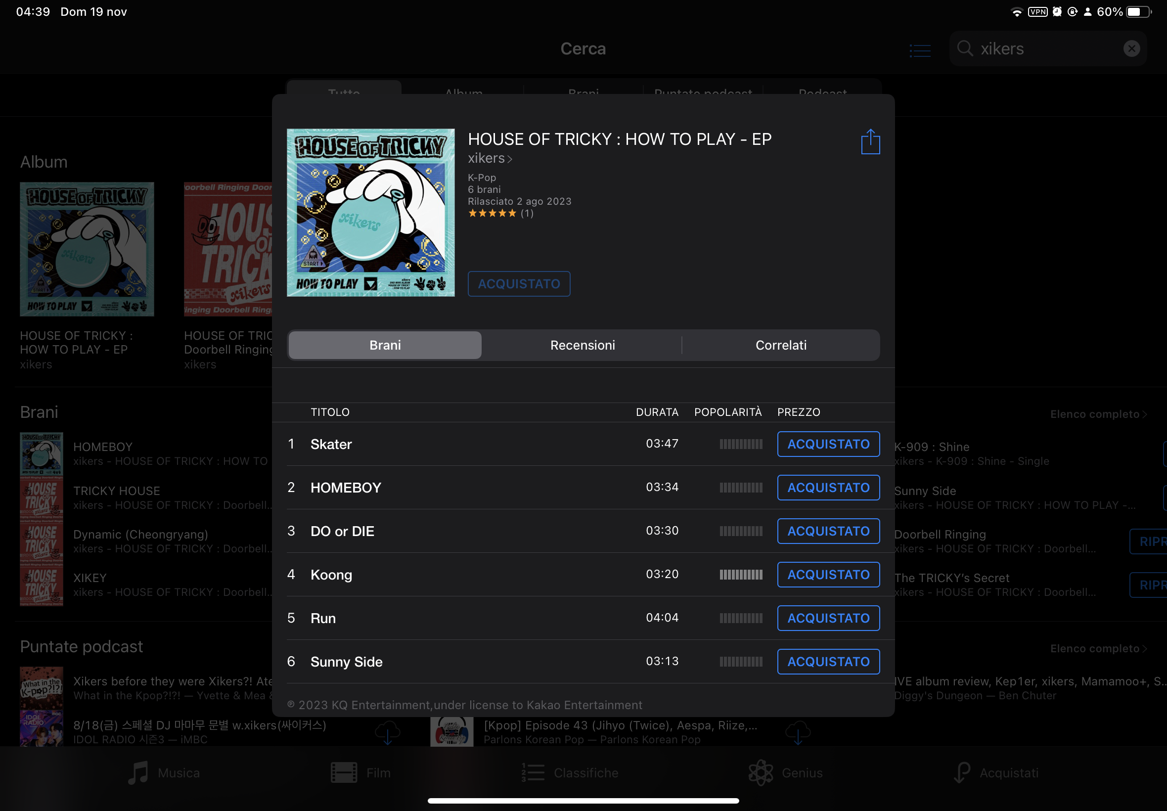 As you can see on the pics, I can’t click on the purchase icon (here in Italian as “Acquistato”) if I try to restore the entire album, but weirdly I have to buy once again each single songs separately.