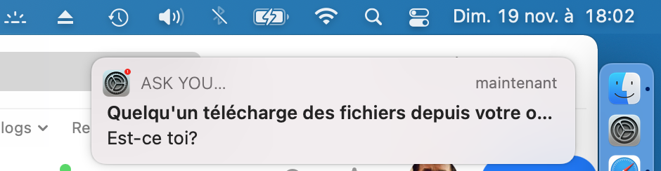 "Suspect a virus: I've got a pop up sliding up from the top right side of screen, displaying the system prefs icon, warning for various fake problems. Message in correct French, no typos. This happens every 5-10 mins or so. They slide off screen after a few seconds , just the time to make a screen shot. -- How do I eradicate this? -- (macOS Big Sur 11.7.10)"