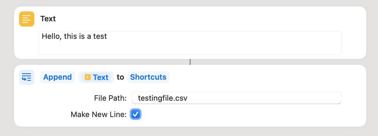 I'm getting variable and frustrating results with a very simple task. I created a shortcut to pass a text variable to the Append to Text File function to write the result to a file. The default location is 'Shortcuts' folder at the top level of iCloud Drive (see image). If I use 'Desktop' as the location, the file is not written to the Desktop folder, but instead reverts back and creates a file in the Shortcuts folder. If I use 'Documents' as the location, I get an error stating I don't have permission. If I use a personal folder I create at the top level within iCloud Drive, the file is written to the correct location. Why the different behaviors? I would prefer to write the file to a subfolder in 'Documents' which makes the most sense.