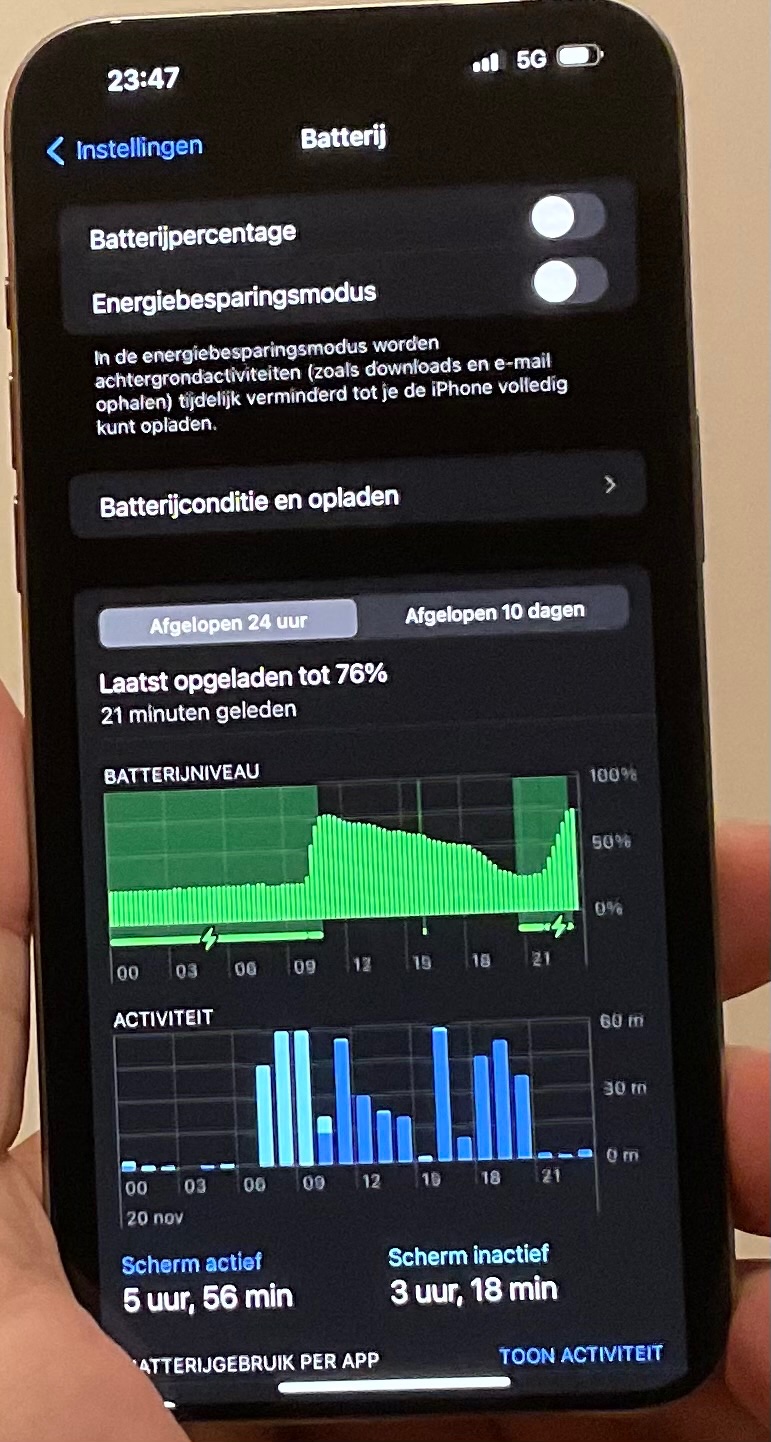 In the battery screen, you can see that the phone was on the wireless charger from 00 until 09. The charging symbol is displayed but the battery level does not increase. When I,plug in the usb c, the phone charges as expected.
