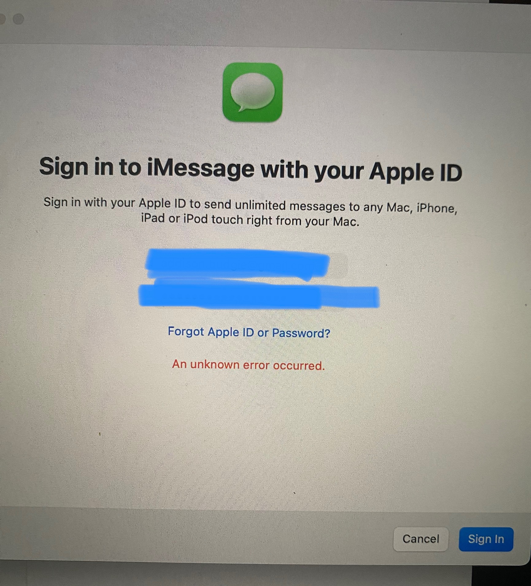 I signed out of my Apple ID, and made sure I’m up to date with the MacOS updates but when I try to sign into iMessages on my Mac, it still says “unknown error has occurred”. It’s annoying and has been like this for a month. How do I fix this?