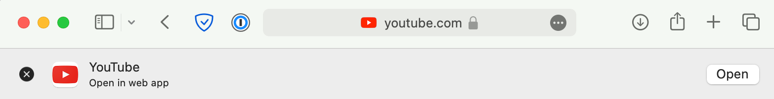 After creating a web app out of a website and adding it to the dock in MacOS Sonoma, every time a new web page is opened in safari for those websites, a banner appears allowing you to open the page in the web app version. This banner has to be manually exited out every time, and reappears every time.
