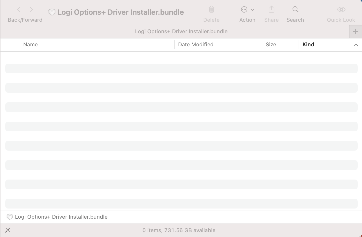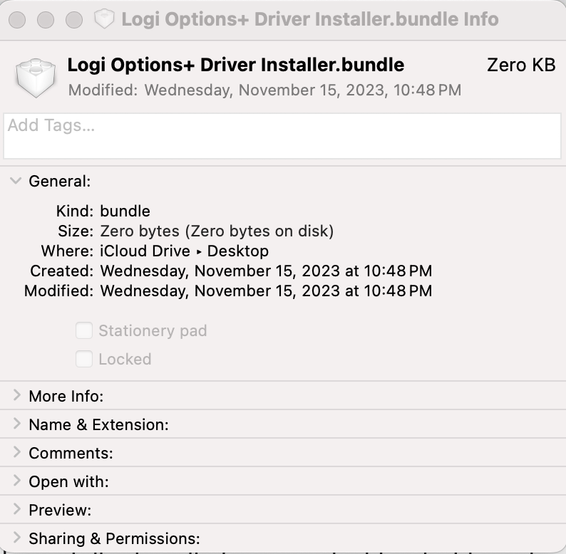 MacBook Pro (2023): Logitech Options+ Driver Installer.bundle Unremovable on Desktop