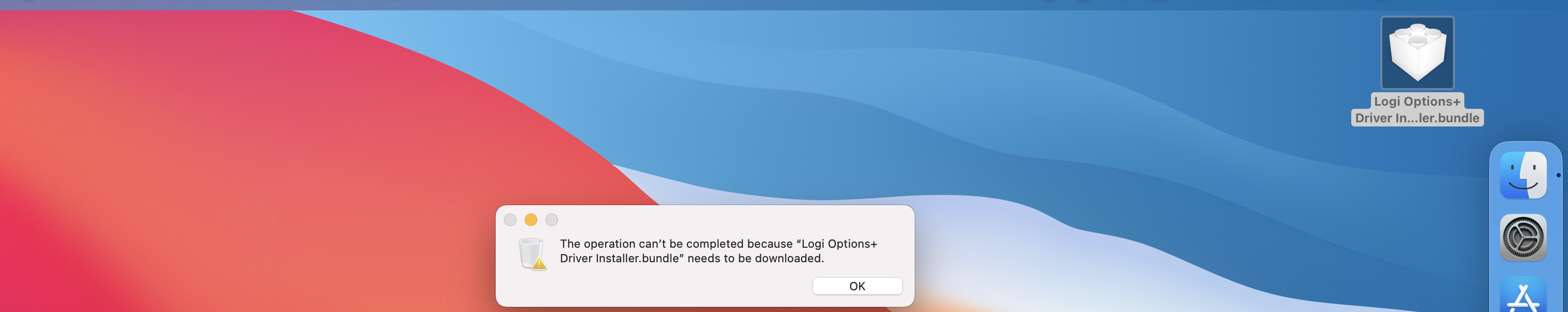I need help removing the Logi Options+ Driver Installer from my desktop. Whenever I log in to my MacBook, I get an alert that says "File Not Found" with no further details. I've tried to delete the installer, but I can't seem to do it. I have already uninstalled any Logitech applications from my MacBook, and I even tried uninstalling and reinstalling the Logi Options+ app, but nothing worked.