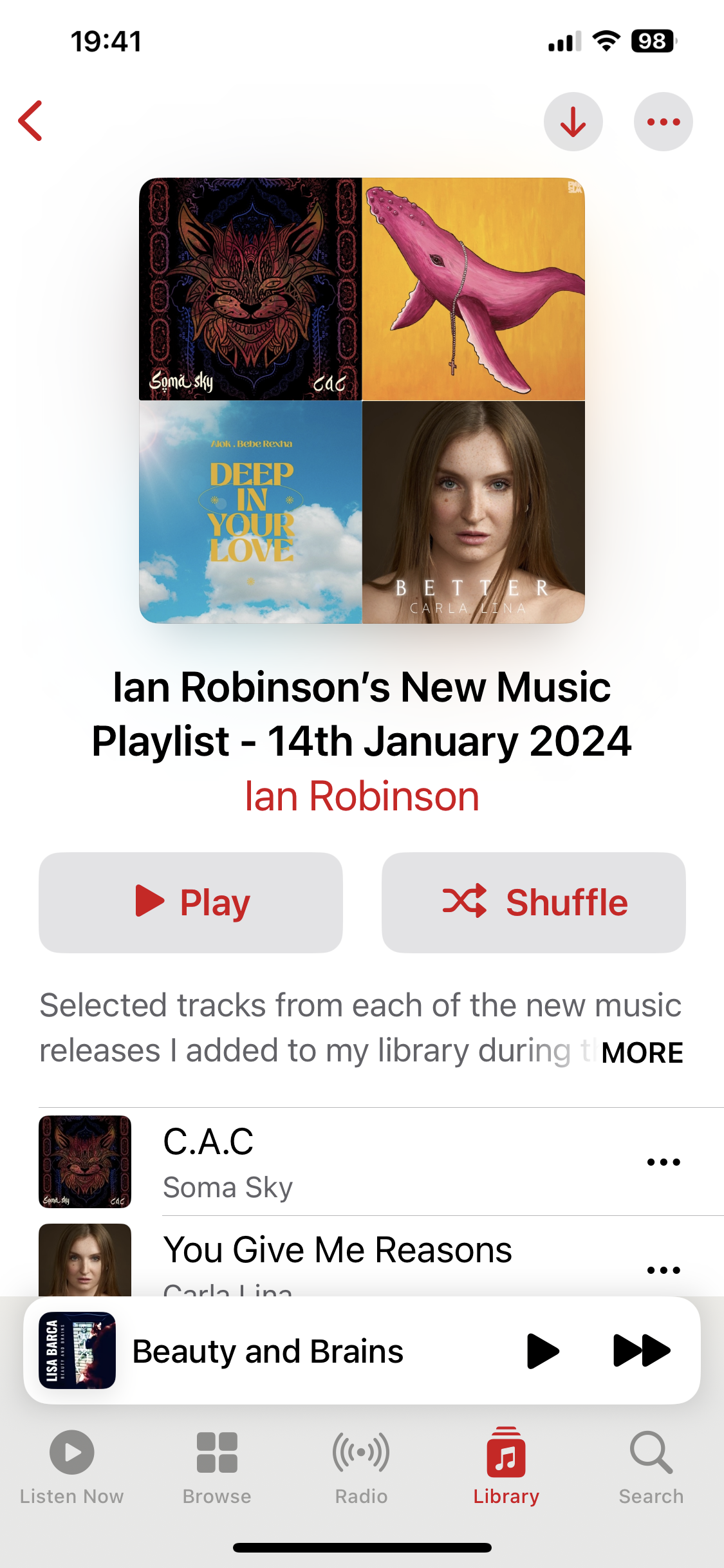 Instead on Playlists it defaults to a standard colour 'design' which has nothing to do with the original album or artist.
