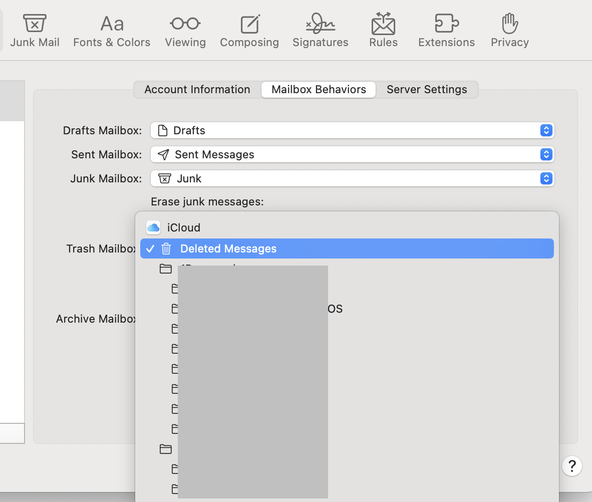 I need to find where all deleted emails stored. they take lots of unnecessary iCloud storage.