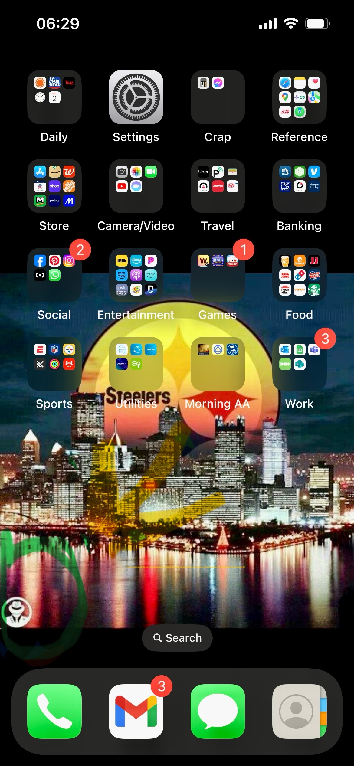 What is the badge/icon in the bottom left corner on the iPhone. Looks like a man wearing a tie and hat.