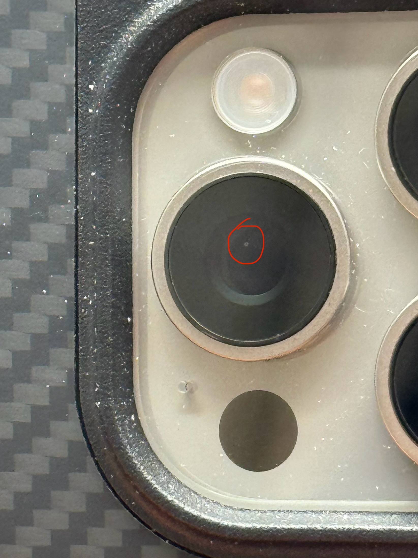 I just recieved my brand new iPhone 15 Pro Max 1TB Natural Titanium after having waited since preordering on September 14th. Upon opening the box I instantly see that it has a dust particle right in the middle of the middle camera lens, and a tiny one inside the lowest placed one of the lenses.