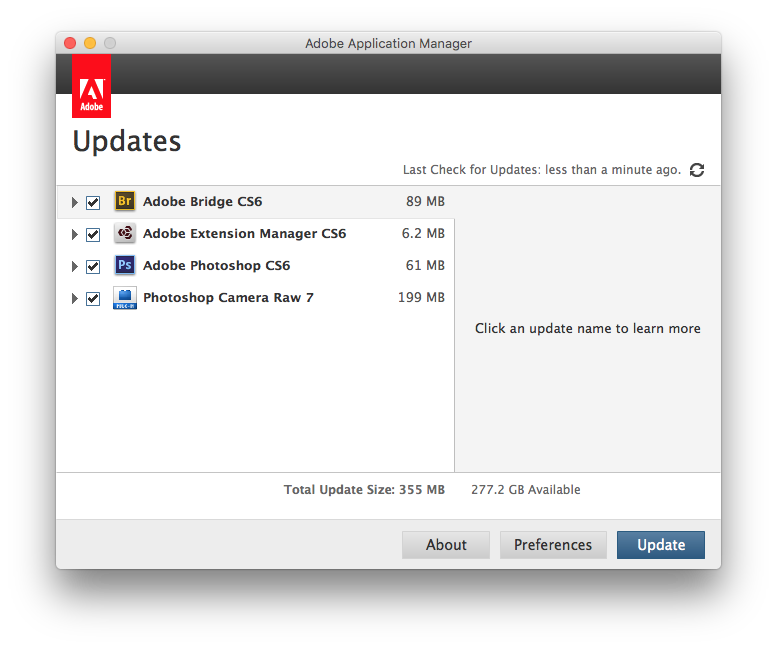 But, working updaters were only available to the buyer by contacting Adobe. I can't remember if he said they gave him links to full installers that already had all of the last patches included, or if they were newer patch files that didn't try to talk to Adobe's servers so they'd work, as a standalone patch file should. Either way, he finally got all of the apps updated to their last versions.