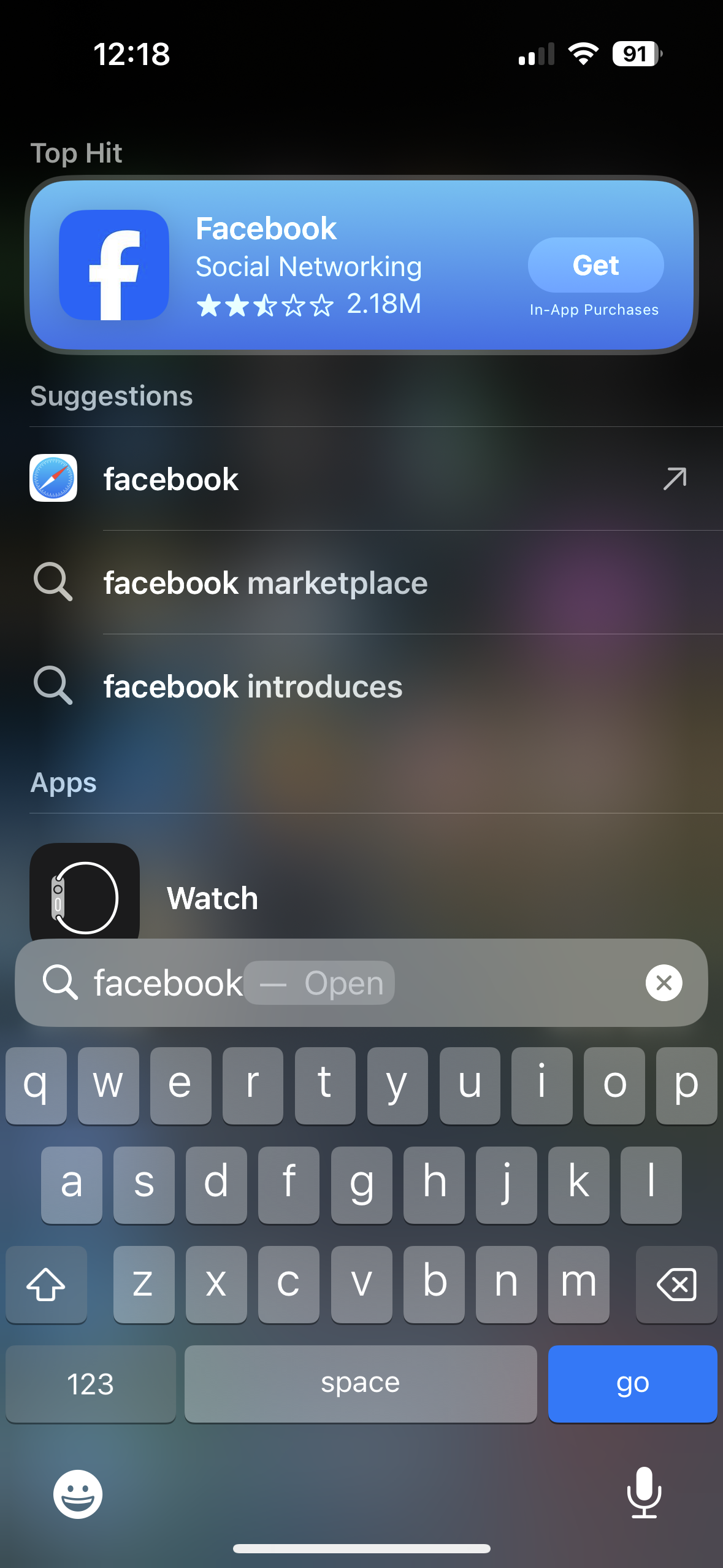 I typed Facebook and Facebook is not appearing even though I have the app.