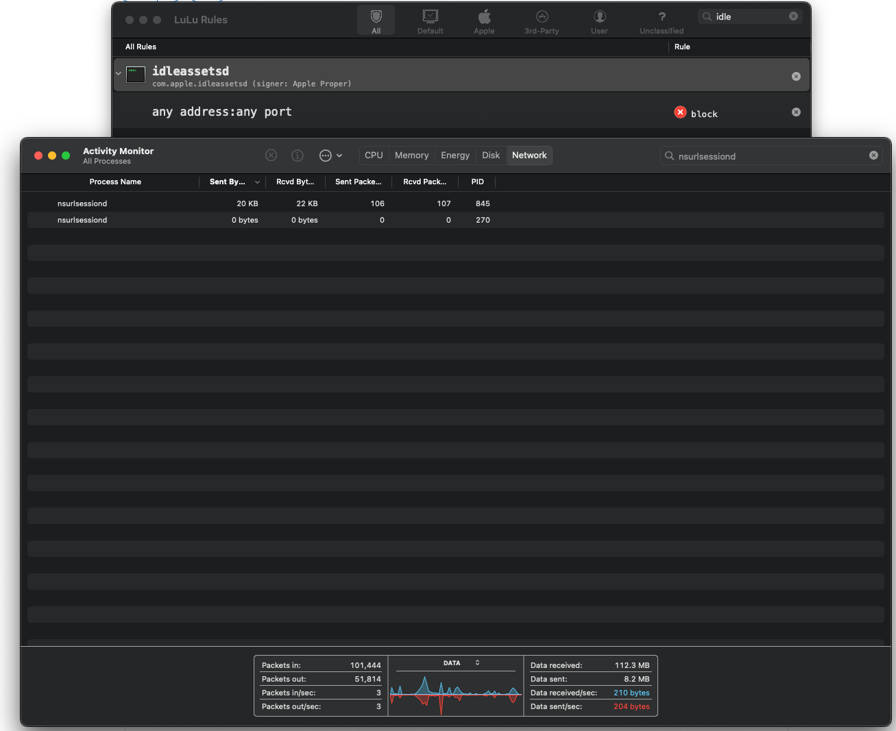 High Band With "idleassetsd" & "nsurlsessiond" back ground process