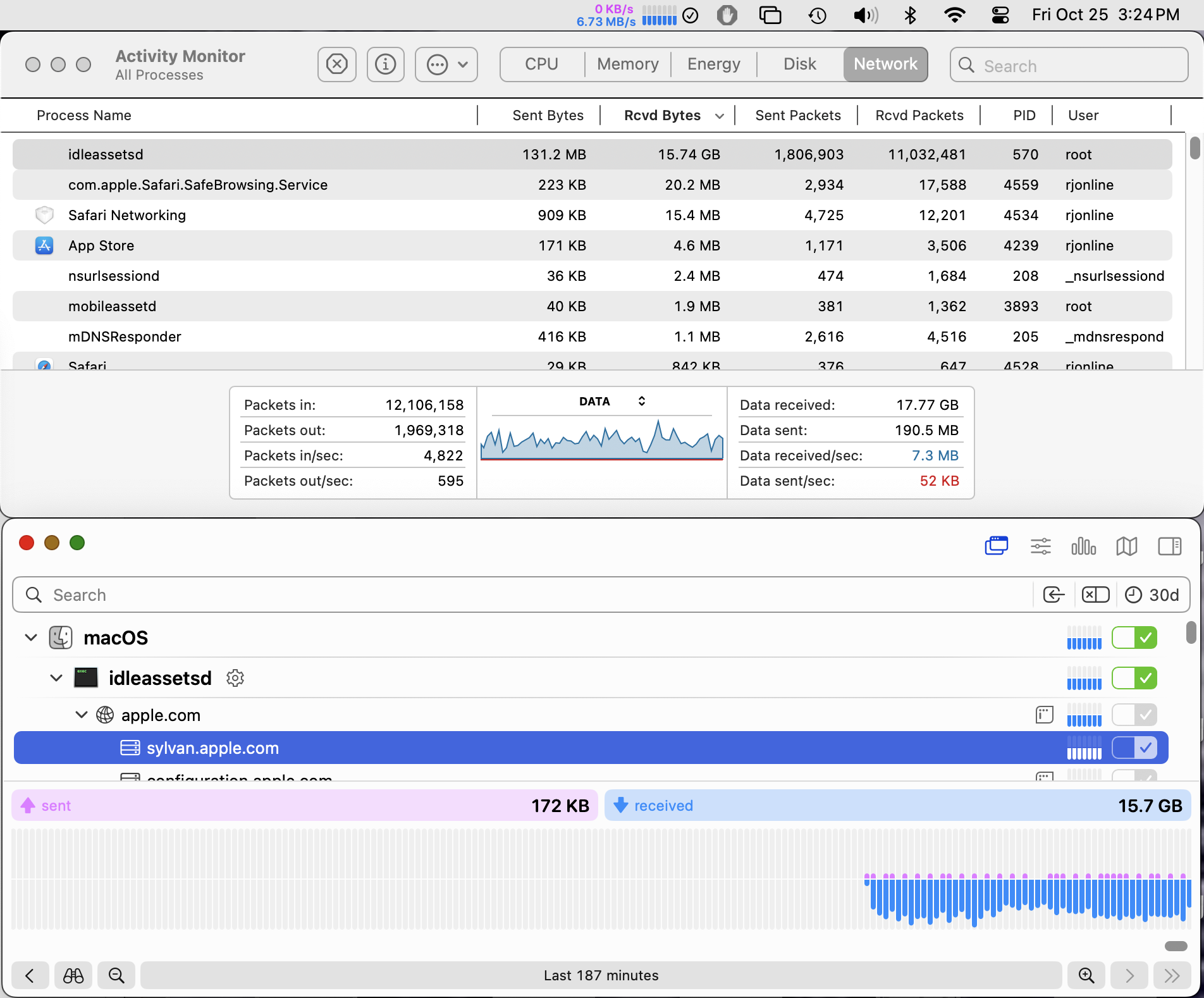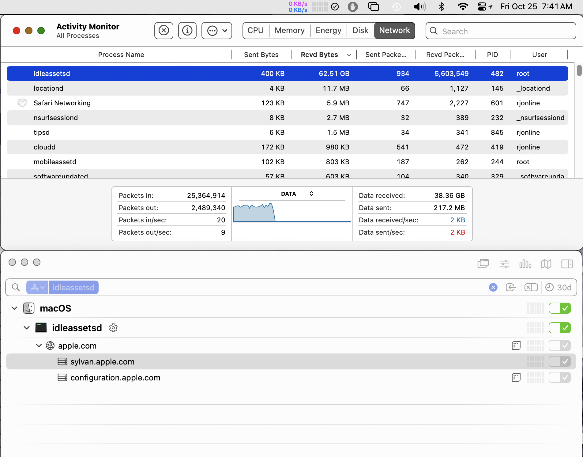 After the upgrade to Sequoia, then IdleAssetsD got back to its usual network-hog behavior.