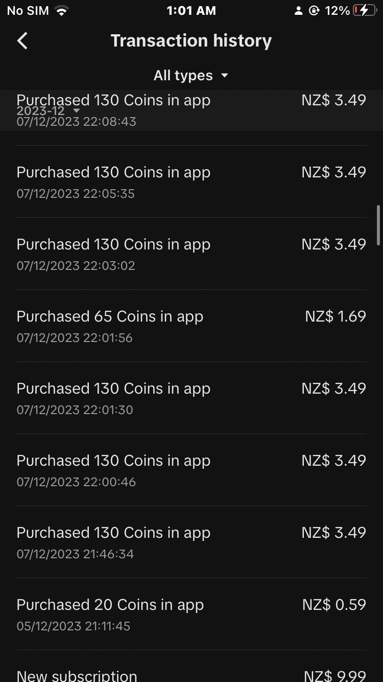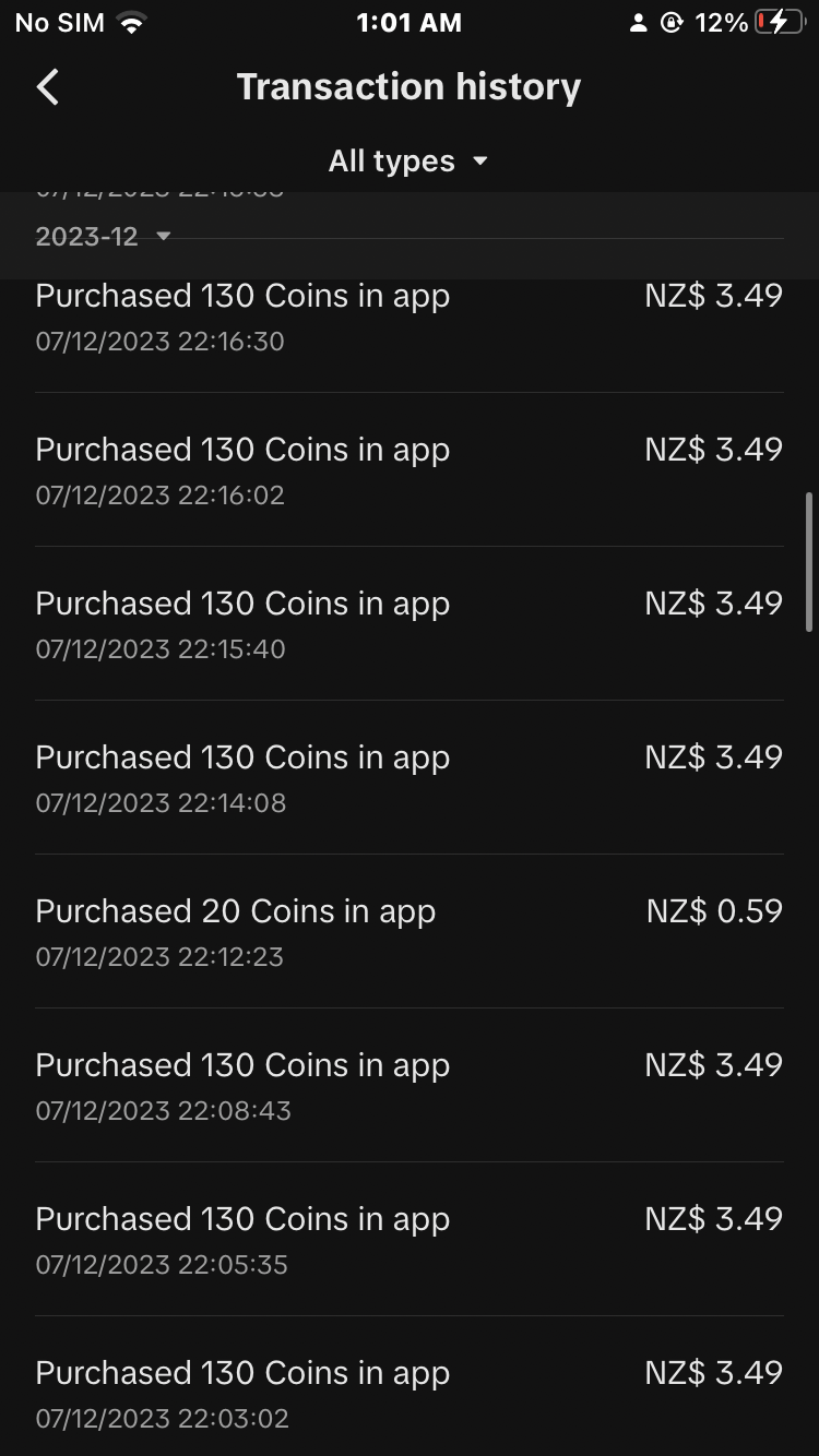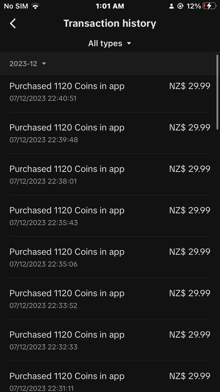 My cousin has purchased over 300 worth of TikTok coins and my bank acc has gone down and I really desperately need a refund of the money back I’m currently struggling I don’t get sent a a receipt but I have proof of purchases from 7/12/23
