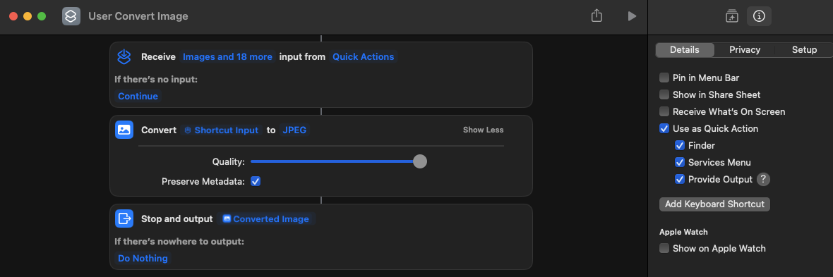 The goal is to get the files out of HEIC format so they are more accessible. Since we don't know where these images are going to end up, or how they are going to be used, we probably shouldn't recommend formats like JPG, or even PNG, that could cause a loss of data.