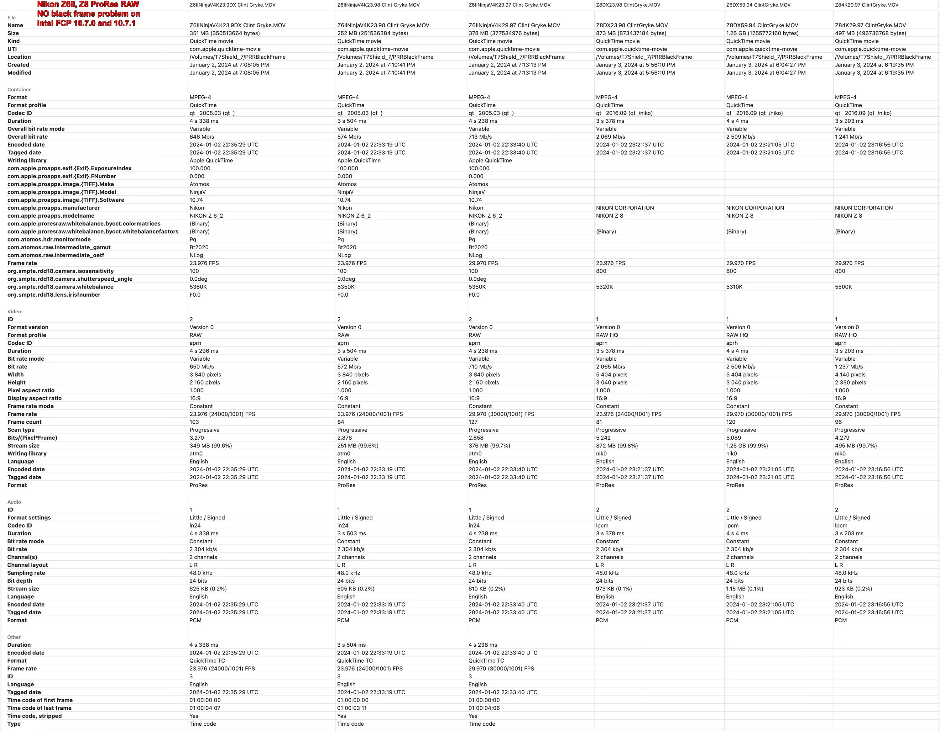 I don't work for Apple, but I've spent a lot of time trying to reproduce this on various machines, and I only have the one Nikon Z8 clip that shows it. We need more information on the specific problem cases, also short ProRes RAW camera files which show the problem. That is unaltered out-of-camera files, not a rendered FCP output or frame grabs. It would help to have detailed MediaInfo output to show the metadata.