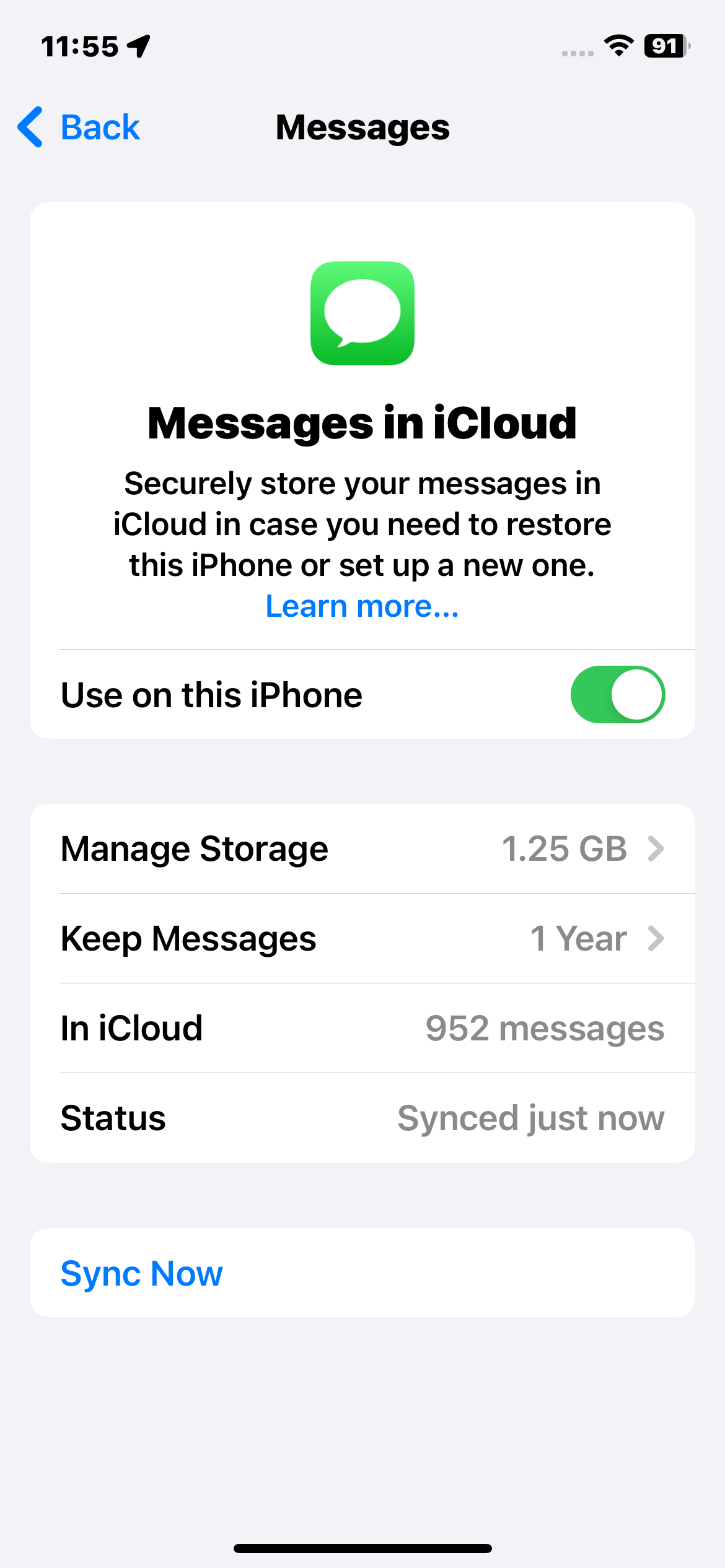 And we’re SURE you have enough iCloud storage and your amount used in Messages isn’t higher than that?