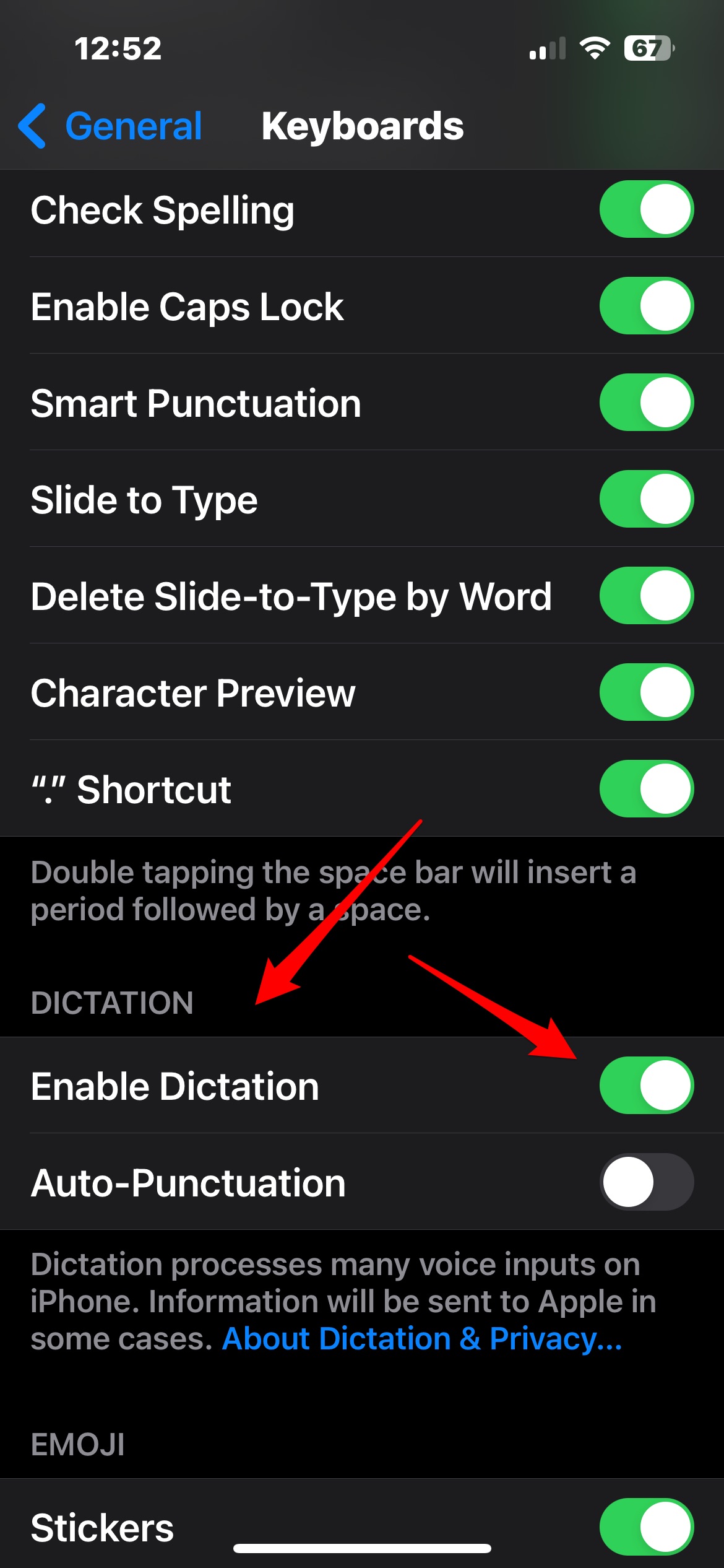 I turned on when I ‘TURNED OFF’ - Enable Dictation!!
