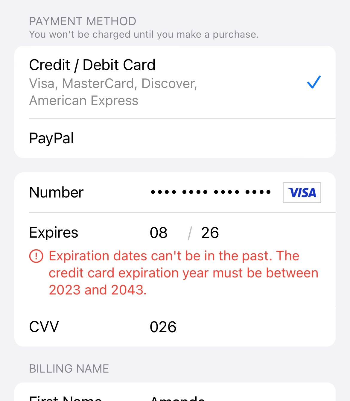 If you see the message "Could Not Add Card" or "Invalid Card," contact your bank or card issuer.
