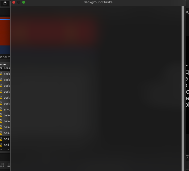 This has been going on for a couple years now, finally getting around to seeing if anyone else has run across this. My background tasks window is completely blank, even when tasks are running. Doesn't matter what task should be running, it's always blank. See screenshot - you can see that there's tasks running (making proxies), but the task window has nothing in it.