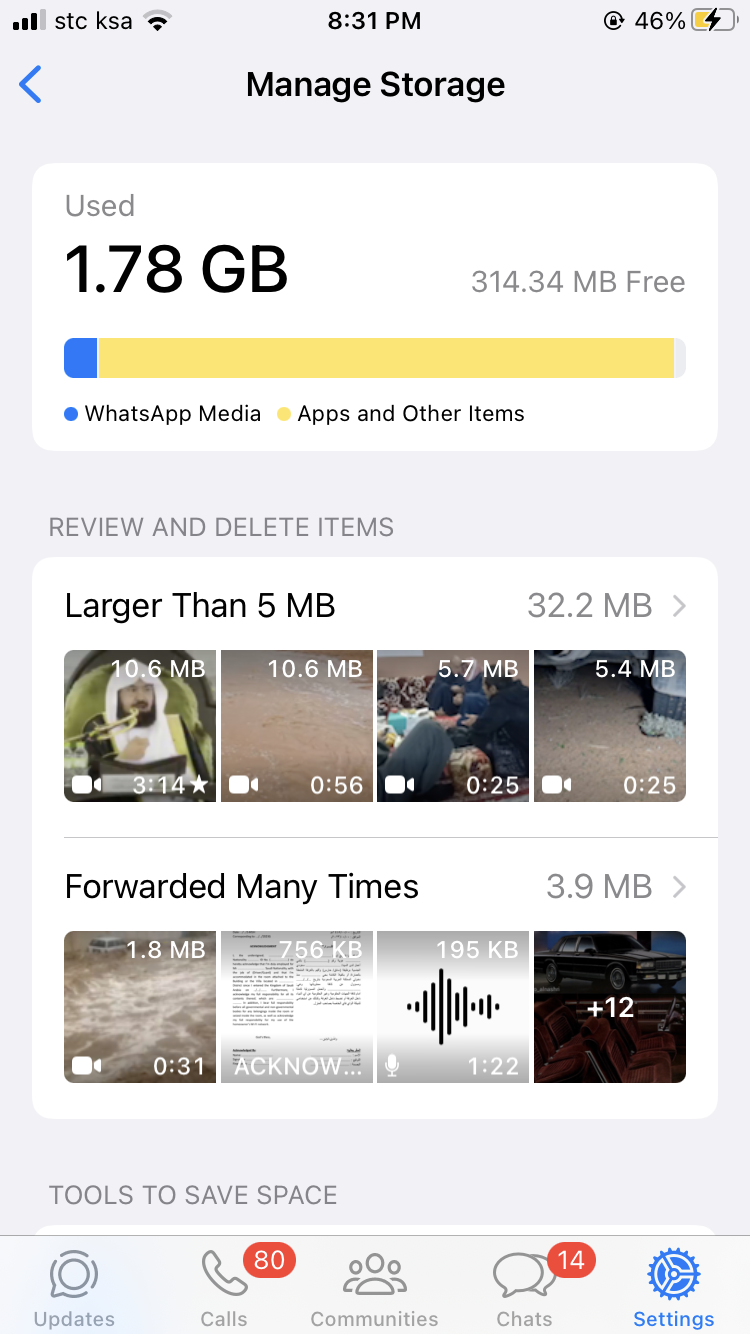 i have a problem bothering me a lot my whatsapp storage says it has taken 1.8 GB of storage and in settings app whatsapp is taken 10 GB ! even if its back up data it doesn’t reach 2 GB really frustrating I couldn’t find a solution i have tried taking so many conversations deleting them i just kept the important one and it’s still taking 10 GB on iPhone I don’t know why if anyone can help me it would be much appreciated
