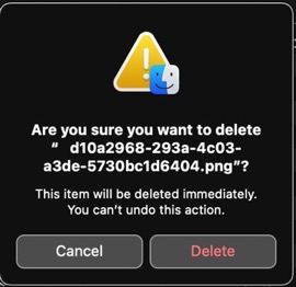 Since updating to SONOMA on my iMac, anytime I go to move a file on my desktop to the trash a Finder window pops up and asks "Are you sure you want to delete __file name__ file? This item will be deleted immediately. You cannot undo this action." How do I make this stop...so frustrating. I've gone to Finder>Settings>Advanced but checking or unchecking any of the boxes does not fix this issue...HELP!!