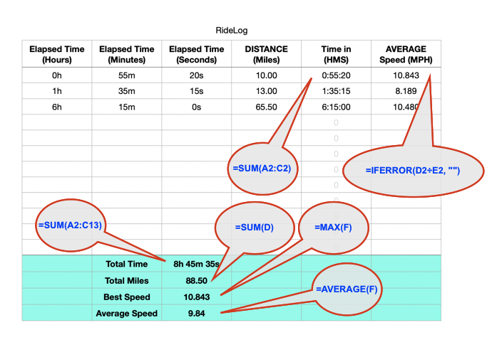 One is called 'Running Log'. Rename that and you've got a cycling log that, among other things, calculates pace. The original looks like this: