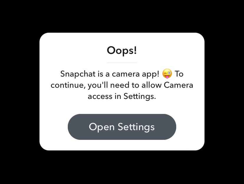 Snapchat is asking me to allow access to the camera, but when I follow it to settings there’s no option to turn camera on. It will not let me into the app until I allow access. (I have an iPhone 11)