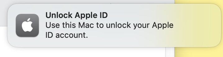 They had me check my Notifications settings in Safari but the only websites are Apple ones and non pop-ups are allowed. It appears when in Safe Boot mode too. They tell me I should upgrade to Sonoma… but I can't because I have some software that requires a paid upgrade to work in macOS 14. Oh, and I changed my Apple ID password twice, once from my computer (after which I got an email saying that my Apple ID password has been reset. Guess what, I still got the message! I changed it again from my iPhone. Guess what? Still happening. This is only happening on my MacBook Pro, no other devices.