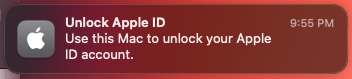 It has a "Show" button on it. When I click that, the message is dismissed, and it brings up the Systems Settings app, with no further actions suggested. When I go into the "Apple ID" section of the Settings app, everything looks normal and fine - I am signed in to the Apple ID, and nothing looks amiss. What am I supposed to be doing? This message keeps popping up every time I unlock my Mac. Is there a way to make it go away?